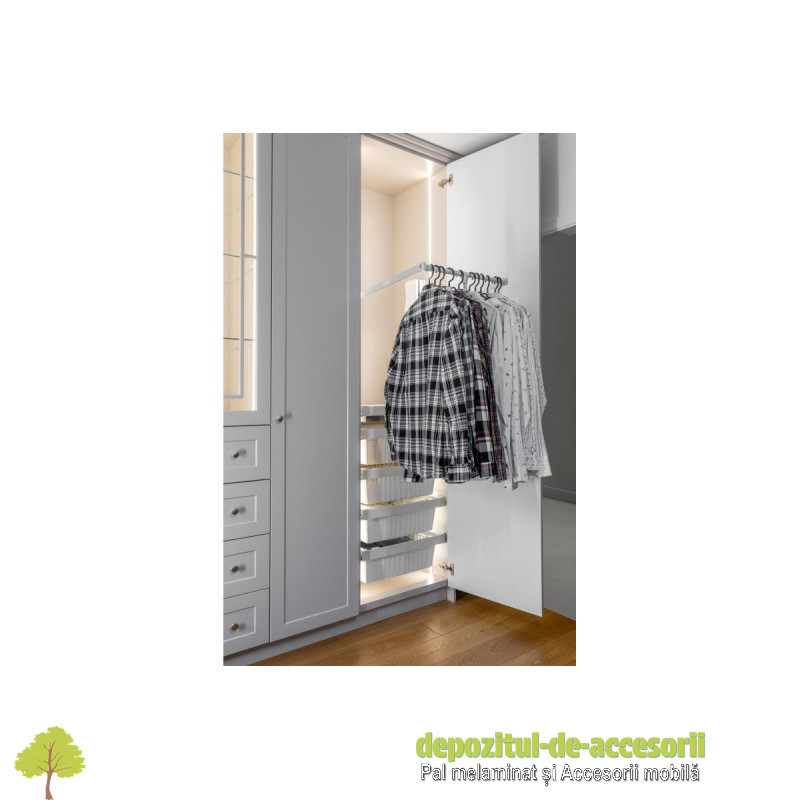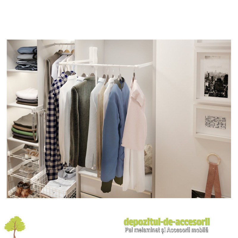 Lift garderobă GTV PG-ST4560-10A lift haine telescopic 545–700mm alb 8kg ușor acces dulap: Liftul de haine este un element al garderobei și al echipamentului pentru garderobă, fără de care ar fi dificil să folosim părțile înalte ale dulapurilor. Ideal pentru agățarea jachetelor și paltoanelor de iarnă, pe care dorim să le depozităm pe timpul verii, astfel încât acestea să nu ne deranjeze utilizarea zilnică a garderobei. La rândul nostru, pentru iarnă putem pune pe el rochii lungi, de vară. Liftul de haine GTV cu ridicare cu ulei este o soluție pentru fiecare tip de garderobă - atât deschisă, cât și închisă, inclusiv una care face parte dintr-o cameră sau o cameră separată. Hainele expuse pe umerașe plasate pe bara liftului arată elegant și cu gust.