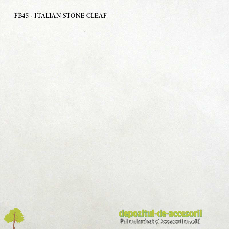 Blat de masă ITALIAN STONE CLEAF FB45 38x800x4200mm Ricci Italia: blat de masă sau blat de lucru, are suprafața mată, termorezistentă. Fabricat din lemn compozit, este acoperit cu strat melaminic de 0,8mm grosime. Blatul de masă ITALIAN STONE CLEAF FB45 face parte din decorurile tip rocă cu dimensiunile: lungime 4200mm, lățime 800mm, grosime 38mm. Suprafața este usor de întreținut fiind rezistentă la temperaturi sub 90°. Se recomandă curățarea cu o cârpă din bumbac sau orice alt material neabraziv. Aceasta va împiedica mătuirea în timp a suprafețelor. Partea din spate a blatului, are aplicată din fabricație cant melaminic printat cu sigla fabricantului.