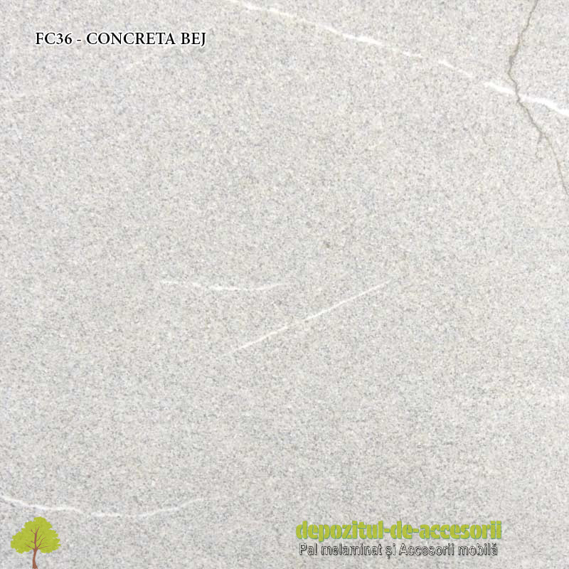 Blat de bucătărie CONCRETA BEJ FC36 68x600x4200mm Ricci Italia: blat de bucătărie sau blat de lucru, hidrofugat, are suprafața mată, termorezistentă. Fabricat din lemn compozit, este acoperit cu strat melaminic de 0,8mm grosime. Blatul de bucătărie CONCRETA BEJ FC36 face parte din decorurile tip rocă și are dimensiunile: lungime 4200mm, lățime 600mm, grosime 38mm. Suprafața este usor de întreținut fiind rezistentă la temperaturi sub 90°. Se recomandă curățarea cu o cârpă din bumbac sau orice alt material neabraziv. Aceasta va împiedica mătuirea în timp a suprafețelor. Partea din spate a blatului, are aplicată din fabricație cant melaminic printat cu sigla fabricantului.