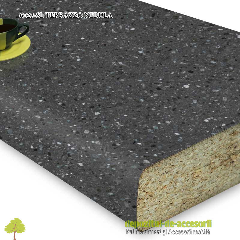 Blatul de lucru semi-mat 6023-SL TERRAZZO NEBULA are lățimea de 600mm, lungimea de 4100mm și grosimea de 38mm.