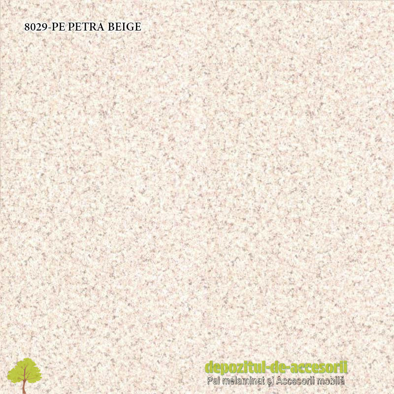 Blat bucătărie PETRA BEIGE 8029-PE 38x600x4100 Krono Swiss: blat de bucătărie sau blat de lucru, are suprafața netedă, semi-mată, efect tactil perlat, termorezistentă. Fabricat din lemn compozit, acoperit cu strat melaminic de 0,8mm grosime. Blatul de bucătărie PETRA BEIGE 8029-PE face parte din decorurile tip rocă și are dimensiunile: lungime 4100mm, lățime 600mm, grosime 38mm.