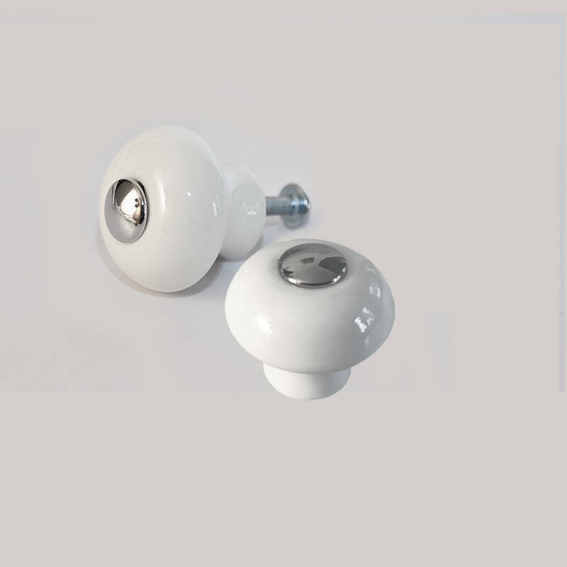 AutentificareButon Mobilier 3738, Design Geometric Modern, Alb/Crom: Formă modernă, finisaj de înaltă calitate și ergonomie optimă pentru orice tip de front.