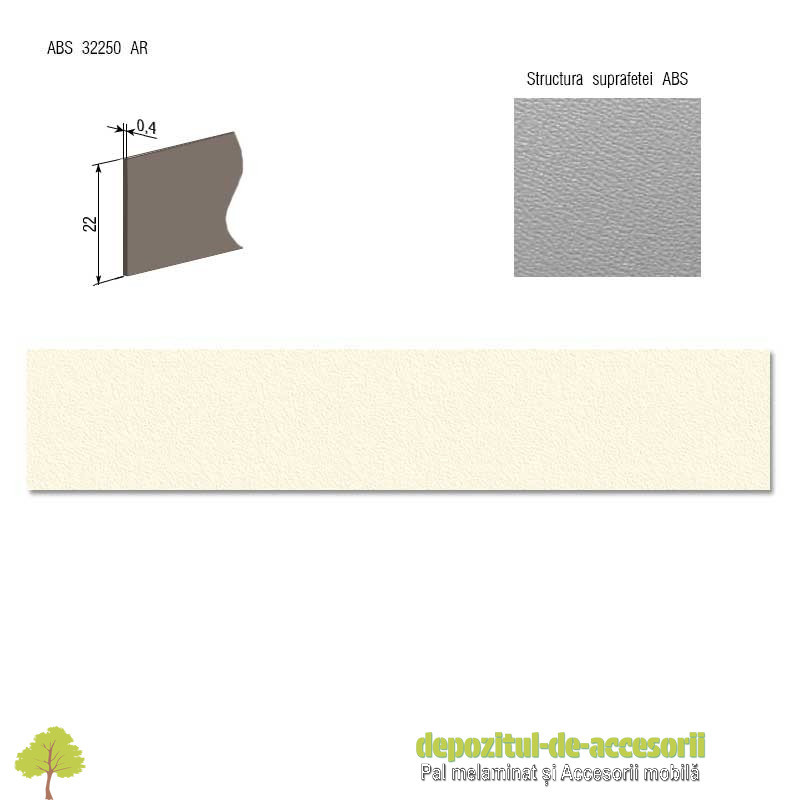 Cant ABS Alabastru 22mm x 0,4mm este compatibil cu PAL-ul melaminat Alabastru produs de EGGER cu codul U104.
