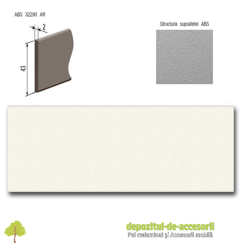 Cant ABS Alabastru 43mm x 2mm. Cantul ABS este destinat acoperirii laturilor plăcilor de lemn, PAL melaminat sau MDF, folosite în industria mobilei sau decorațiuni interioare. Aplicarea cantului are rolul de a...