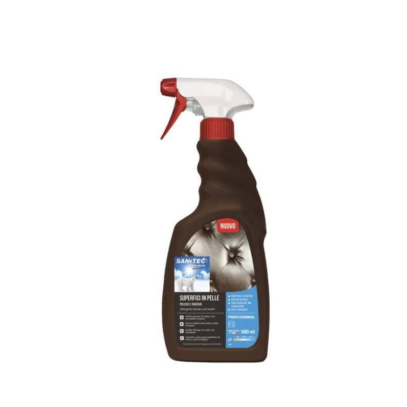 Soluție curățare piele Sanitec 500 ml, detergent profesional pentru piele și ecopiele: Soluția de curățare pentru piele Sanitec 500 ml este un detergent profesional cu pH neutru, special conceput pentru curățarea și întreținerea suprafețelor din piele naturală și ecopiele. Formula delicată, îmbogățită cu ceară naturală, curăță eficient murdăria și petele persistente fără a deteriora materialul sau a lăsa urme.
