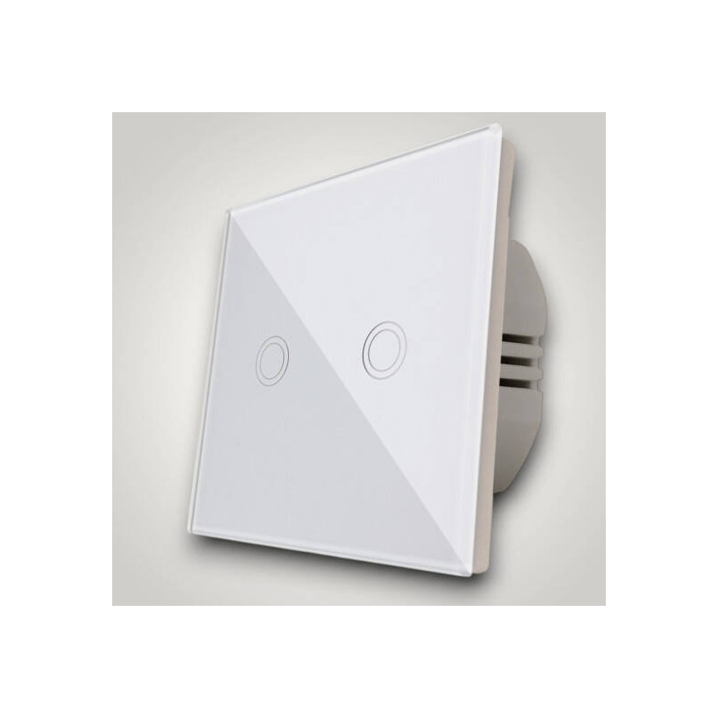Întrerupător touch dublu, alb, din sticlă securizată – întrerupător tactil modern, 2 canale pentru iluminat: Întrerupătorul touch dublu alb este o soluție modernă și elegantă pentru controlul iluminatului din locuințe, birouri sau spații comerciale, oferind posibilitatea de a gestiona două surse de lumină independent, dintr-un singur panou. Cu un design minimalist și finisaj din sticlă securizată, acesta adaugă un plus de stil și rafinament oricărui interior, integrându-se perfect în amenajări contemporane. Panoul frontal din sticlă este rezistent la zgârieturi, umezeală și uzură, păstrându-și aspectul impecabil în timp. În plus, suprafața netedă permite o curățare rapidă și igienică, fiind ideală pentru spații precum bucătării, băi sau camere pentru copii. Tehnologia tactilă capacitivă elimină componentele mecanice, oferind o utilizare silențioasă și o durată de viață extinsă, de peste 100.000 de acționări.