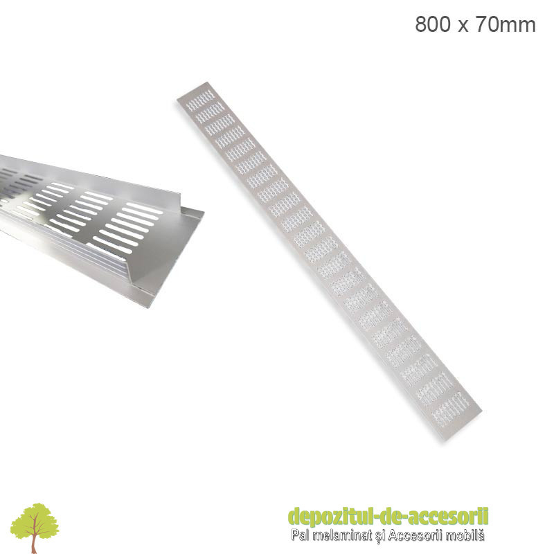 AutentificareGrilă de aerisire 70 x 800mm aluminiu: grila de aerisire din aluminiu este o soluție practică și elegantă pentru industria mobilei, oferind o circulație optimă a aerului în spațiile interioare. Cu o lungime de 800mm și o lățime de 70mm, această grilă este perfect dimensionată pentru a se integra armonios în diversele proiecte de mobilier.