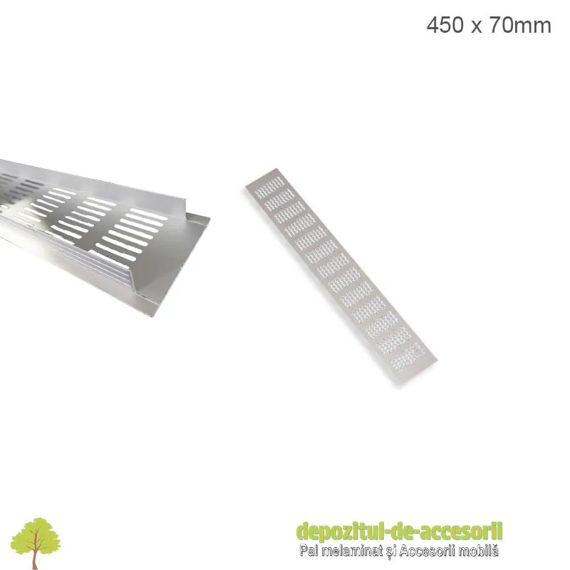 Grila de aerisire din aluminiu este o soluție practică și elegantă pentru industria mobilei, oferind o circulație optimă a aerului în spațiile interioare. Cu o lungime de 450mm și o lățime de 70mm, această grilă este perfect dimensionată pentru a se integra armonios în diversele proiecte de mobilier.