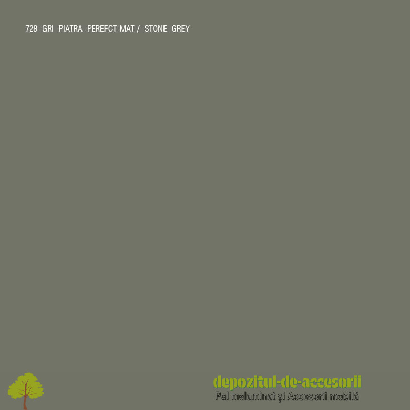AutentificarePanou MDF Gri piatră 728 super mat: Panoul MDF face parte din decorurile uni, are un aspect de culoare uniformă, fără abateri de crominanță, antireflexiv, la pipăit oferind senzația de catifea fină. Suprafețele sunt rezistente la zgâriere, atât timp cât acestea nu sunt foarte puternice. Decorul este plasat doar pe una din fețele panoului, fața opusă fiind melaminată Alb neted.