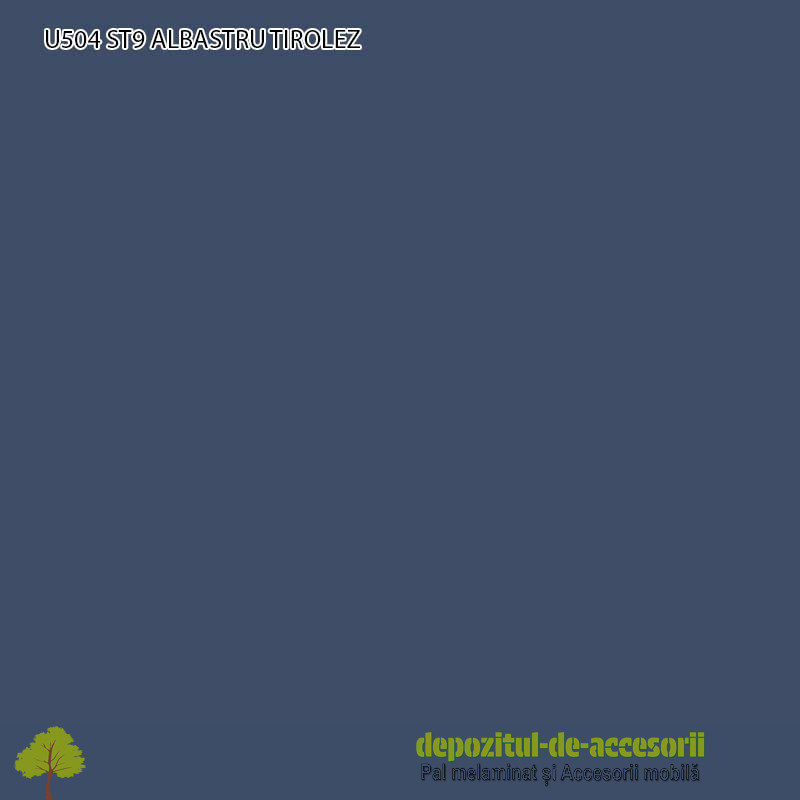 AutentificarePal Melaminat Albastru Triolez U504 ST9 EGGER: Placa aglomerată din lem, (așchii lemnoase impregnate cu aldehidă formică), având suprafețele acoperite cu un finisaj durabil, în decor uni, cu suprafețe efect de culoare mat, tactil oferă efect catifelat, folosită în construcția mobilierului expus unei uzuri intense și murdăririi frecvente.