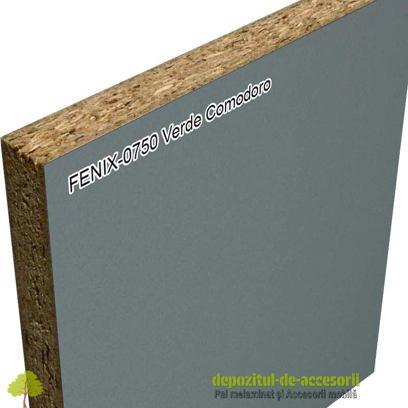 PAL Melaminat FENIX Italia Verde 0750: Acoperit cu materialul unic Fenix, provenit din nanotehnologia aplicata, suprafața are caracteristici unice: este extrem de opac si uniform, moale la atingere si in acelasi timp nemarcat de amprente. Antistatic si antibacterian, poate fi curatat usor. Este mai rezistent si in cazul zgarieturilor la suprafata se poate autoregenera usor. Avantaje funcționale care sunt completate în finisajul mat și oferite într-o gamă largă de nuanțe.