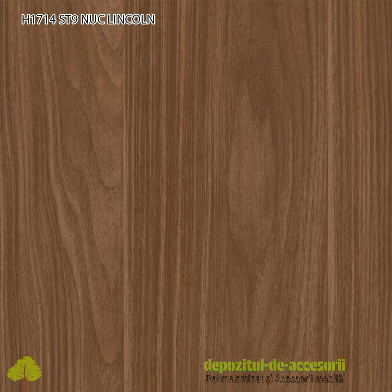 AutentificarePAL Melaminat NUC LINCOLN H1714 ST9 Egger: Placa aglomerată din lem, (așchii lemnoase impregnate cu aldehidă formică), având suprafețele acoperite cu un finisaj durabil, în decor lemn autentic, cu suprafețe efect de culoare mat, efect tactil de catifea, folosită în construcția mobilierului expus unei uzuri intense și murdăririi frecvente.