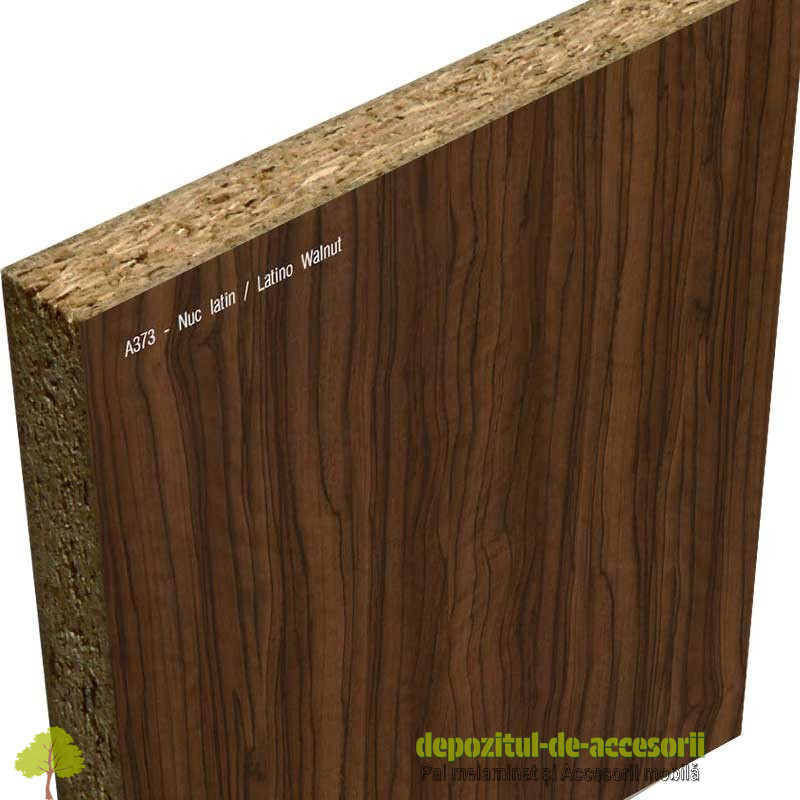 AutentificarePAL Melaminat Nuc Latin A373: Placa aglomerată din lem, (din așchii lemnoase impregnate cu aldehidă formică), având suprafețele acoperite cu un finisaj foarte durabil, în decor lemn, folosită în construcția mobilierului expus unei uzuri intense și murdăririi frecvente. Este recomandat pentru utilizare în industria mobilei și în amenajări interioare.