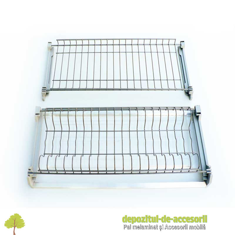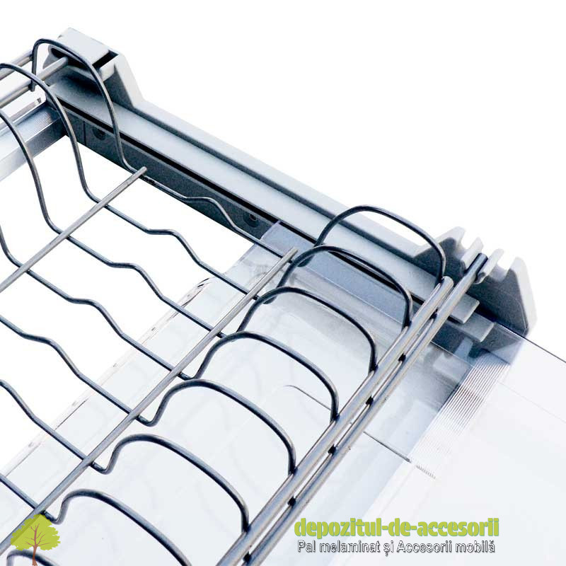 AutentificareScurgător vase Studio Cucina cu ramă AL 450mm gri: sistemul picurător vase este de tip poziționare fixă, cu lungimea de 564mm, și adâncimea reglabilă între 282mm și 320mm cu prindere a grătarelor pe șine din ABS, și este etajat pe două nivele, un grătar fiind destinat farfuriilor, iar al doi-lea grătar, paharelor, ceștilor, tacâmurilor sau altor vase mici sau medii de bucătărie.
