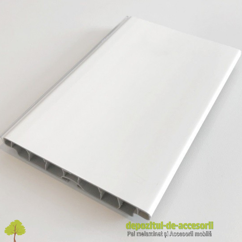 Plintă 150mm, lungime 4m, Kapsan: plinta maschează picioarele de plastic ale mobilierului de bucătărie sau baie. Este confecționată din PVC, are încorporată pe suprafața activă o culoare alba. În partea din spate, este prevăzută cu un canal pentru fixarea clipsurilor ce se vor prinde de picioarele mobilierului în poziție fixă. În partea de jos este prevăzută cu un cheder transparent elastic ce se ”mulează” pe suprafața solului, împiedicând astfel pătrunderea prefului sau chiar a apei, atunci când se spală pe jos. Clipsurile de prindere și elementele de conectare la diferite unchiuri se comercializează separat ca accesorii. Plinta este acoperită pe suprafața activă cu o folie de protecție autoadezivă transparentă.
