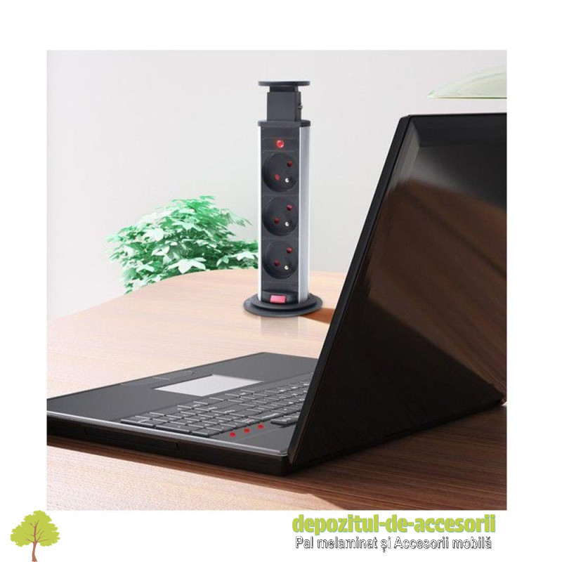 Priza mobila retractabila LIFT BOX- 3 prize negru: LIFT BOX este o priză de mobilă modernă folosită în mobilierul de birou și bucătărie.