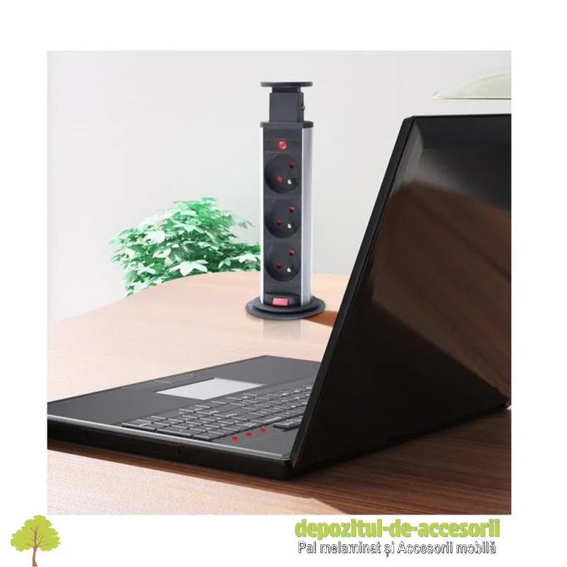 AutentificarePriza mobila retractabila LIFT BOX- 3 prize negru: LIFT BOX este o priză de mobilă modernă folosită în mobilierul de birou și bucătărie.