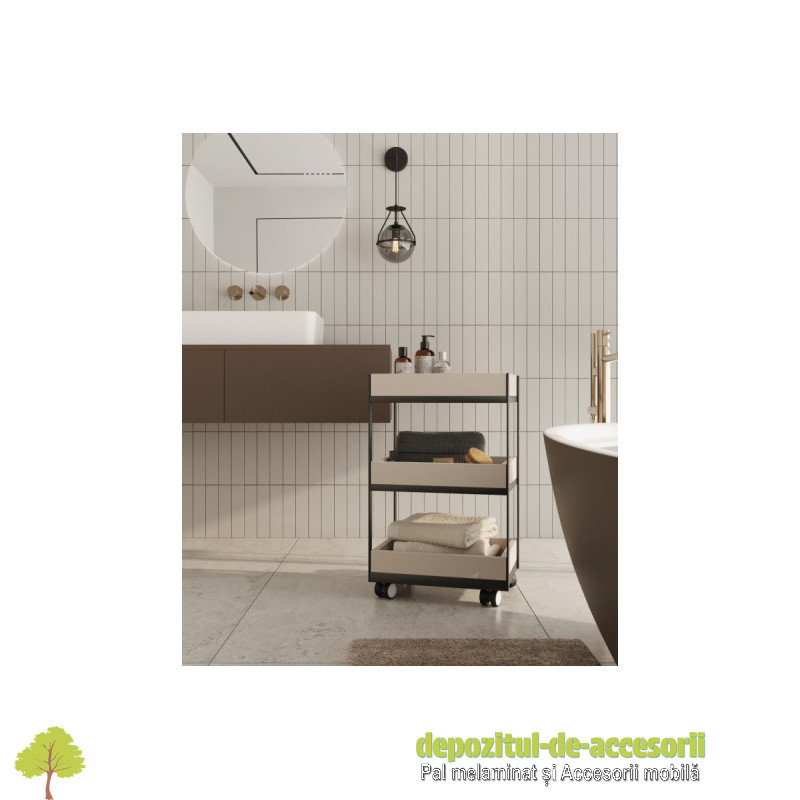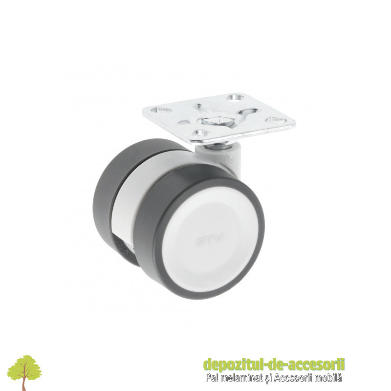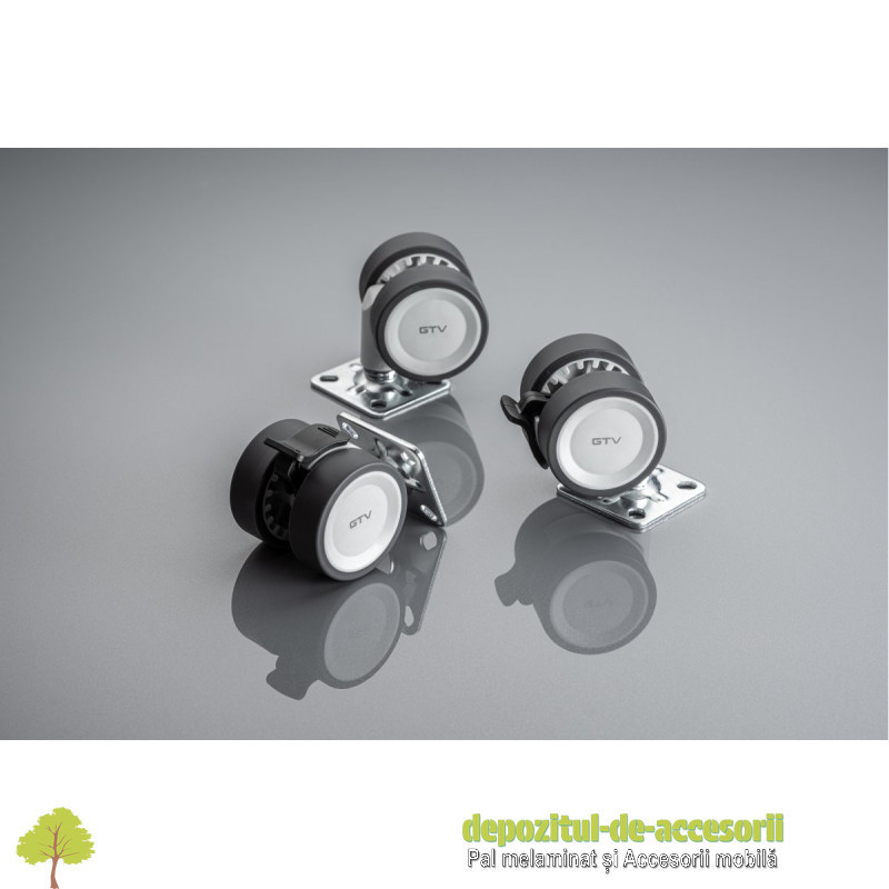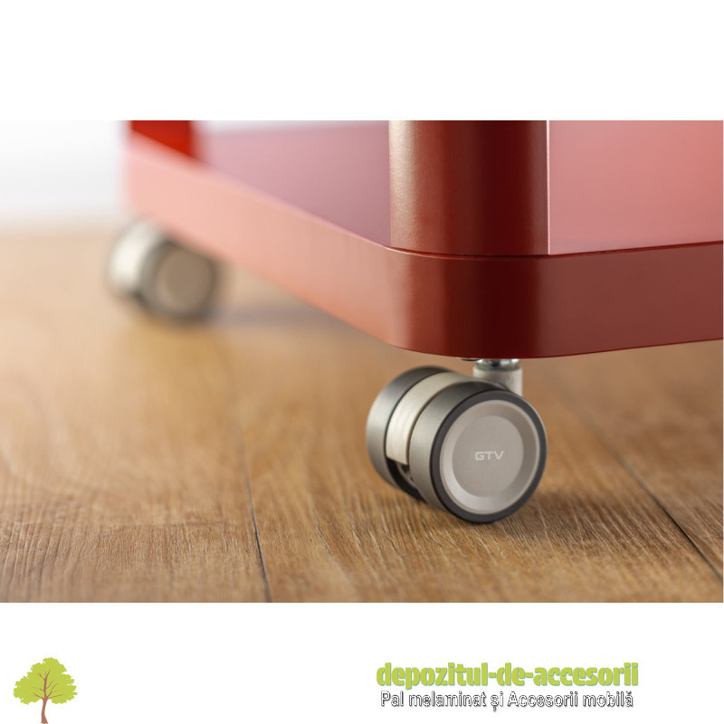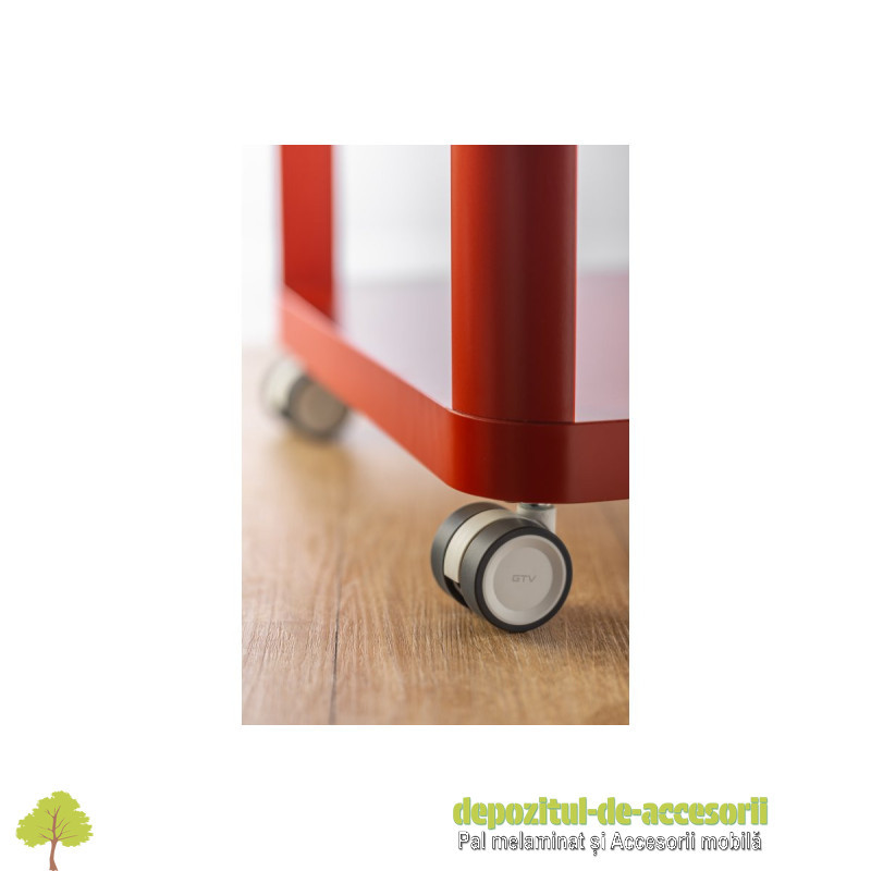 Rolă CIRCO 50mm, fără frână, cromată: Rola pivotantă "Circo" are un design modern și este destinată mobilierului ușor, cum ar fi măsuțe de cafea, dulăpioare sau fotolii. Este fabricată din oțel și plastic gri deschis. Calea de rulare din poliuretan (PU) este silențioasă și protejează podelele (parchet, gresie) de zgârieturi. Acest model are un diametru de 50 mm și nu este echipat cu frână de blocare.
