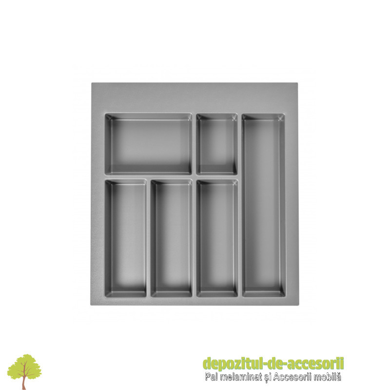 AutentificareOrganizator tacâmuri AXISSPACE, corp 500mm, antracit: Organizatorul de tacâmuri AXISSPACE este conceput pentru a se potrivi în sertare cu lățimea exterioară a corpului de 500 mm. Este fabricat din plastic de înaltă calitate, durabil și ușor de curățat. Designul său modular și compartimentarea...