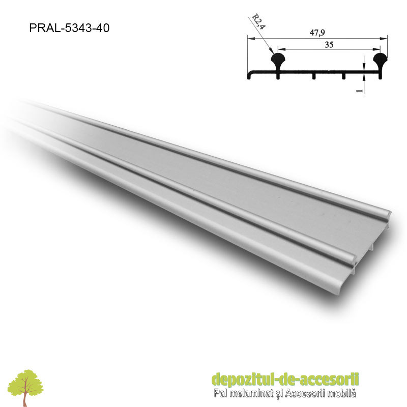 Șină dublă PKM80 M 3m aluminiu: profilul este frecvent utilizat ca șină de culisare inferioară sau superiară pentru sistemele de glisare a ușilor grele prevăzute cu sisteme PKM80-M contruite din PAL melaminat sau MDF...