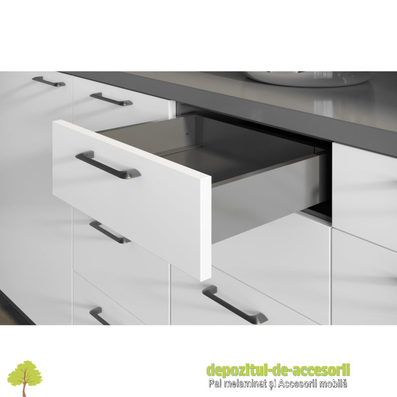 Funcții: Închidere amortizată, silențioasă, reglaj front sertar pe verticală și orizontală, asamblare simplă