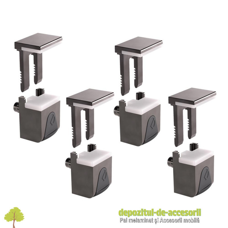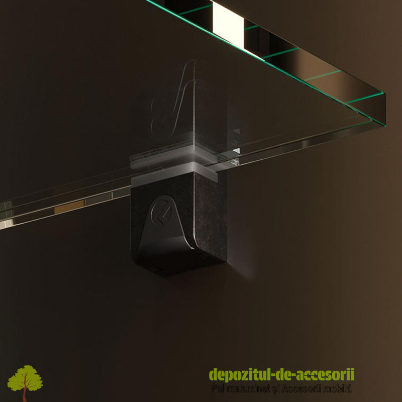 Set Suport poliță sticlă GRACE 6mm negru: GRACE este un suport de raft din sticlă cu un design unic cu estetica sa modernă, făcând parte din colecția de top a produselor noastre. Setul este compus din 4 suporti.